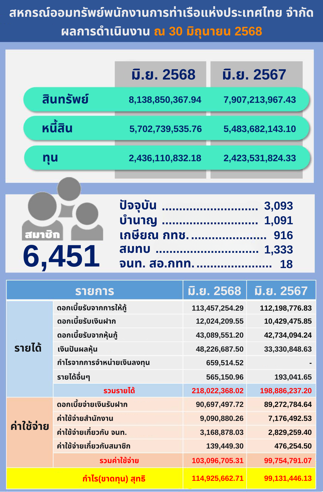 ผลการดำเนินการเดือนมิถุนายน 2568